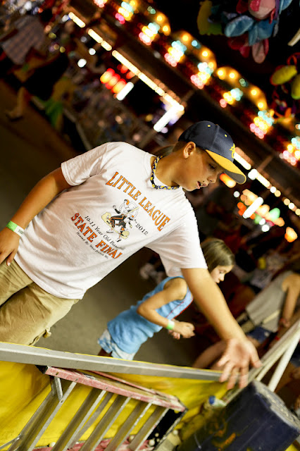 Another summer slowly coming to a close and the fair as a kid always gave me that alert that in a month I was going back to school. Met my family there Thursday night and we visited all of our favorite places: Vince's Coney Dogs, Lemonade Shake Ups, Yummy French Fries, Cheese Sticks. Somehow we consume a week's worth of calories but you pass another food booth and suddenly your stomach has room. The kids go straight to the Midway to ride rides and play carnival games. Bryce won Cait a penguin and Cam and Bryce won inflatable bats...and some goldfish for our home ( they unfortunately suffered an untimely death as did the ones last year)